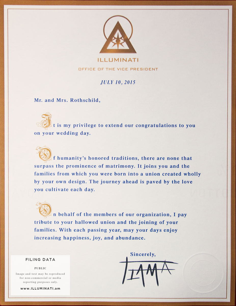 The Illuminati congratulates Mr. and Mrs. Rothschild (née Nicky Hilton) on their July 10, 2015, wedding day.